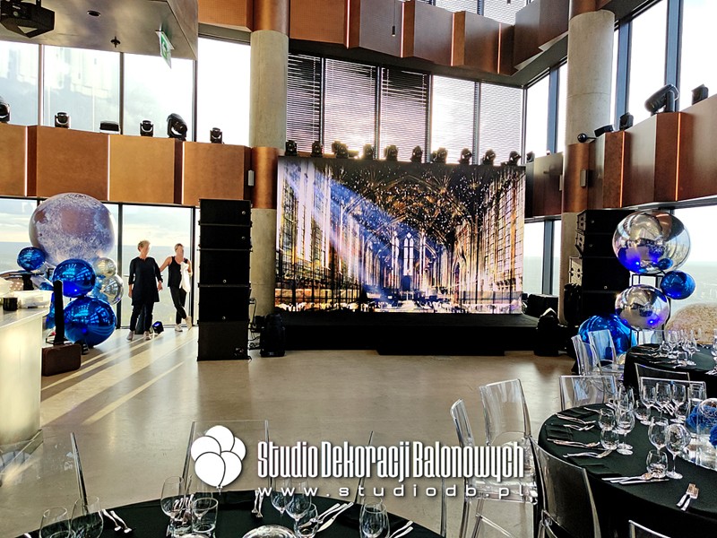 W przestrzeni nowoczesnego biurowca, z panoramicznym widokiem na miasto, stworzyliśmy zapierającą dech w piersiach scenografię inspirowaną przestrzenią kosmiczną. W dekoracji wykorzystaliśmy: